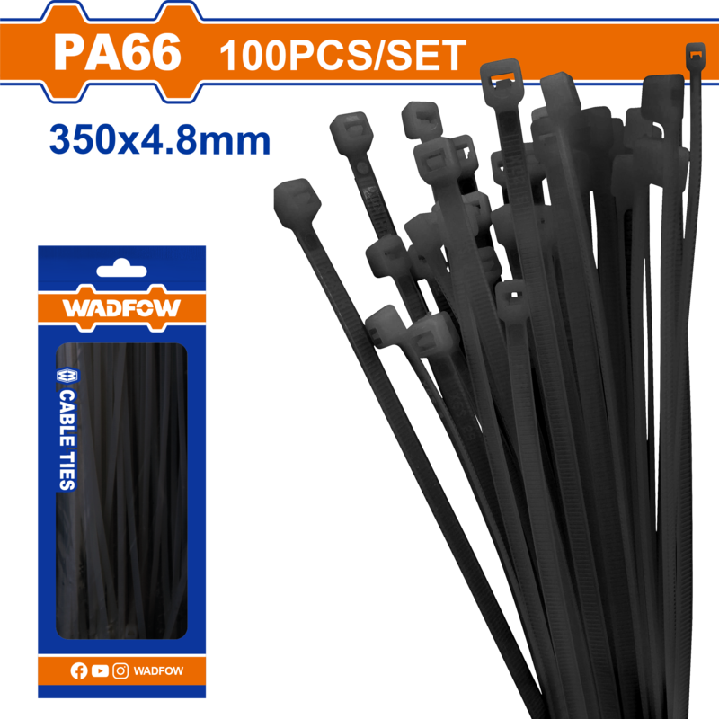 Кабельные стяжки черные 4.8х350 мм 100 шт (50/100) WADFOW WTEB535048 – купить за 350 ₽ | WADFOW Russia